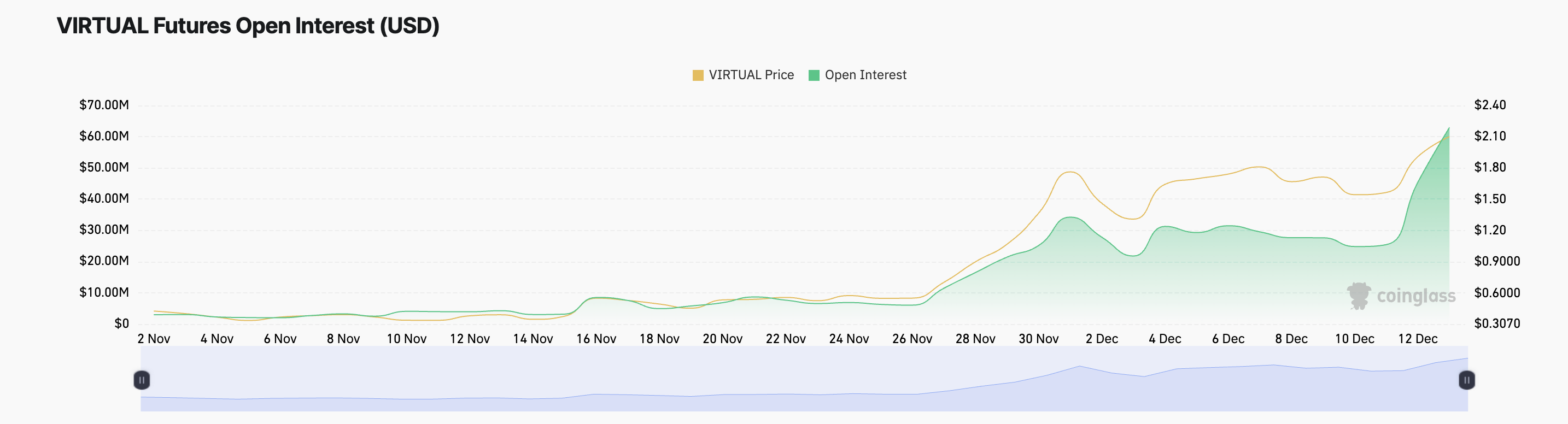 Ayrıca, VIRTUAL’ın açık pozisyonlarındaki artış, işlem faaliyetlerindeki artışı doğruluyor. Bu yazı itibarıyla, 63 milyon dolar ile tüm zamanların en yüksek seviyesinde ve son 24 saatte %48 artış gösterdi.