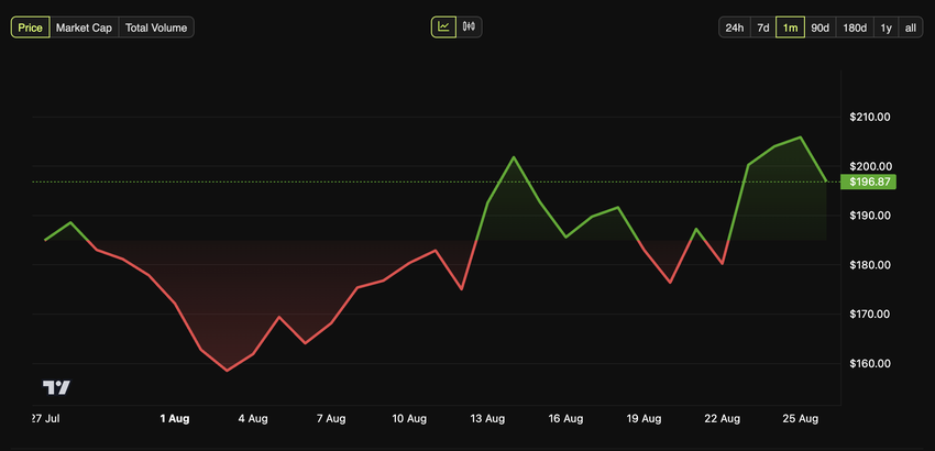 Solana’nın yerel token’ı Salı günü 187-189 Dolar aralığında işlem gördü ve hafta sonu kısa bir süreliğine 212 Doları aştıktan sonra 24 saat içinde %10-11 düştü. Düşüşe rağmen, SOL hala en çok kurumsal destek gören varlıklardan biri olmaya devam ediyor. Visa, küresel kredi kartı ödemelerini hızlandırmak için blockchain’ini test ediyor. Token’ın tüm zamanların en yüksek seviyesi (ATH) olan 293 Dolara Ocak ayında ulaşıldı.