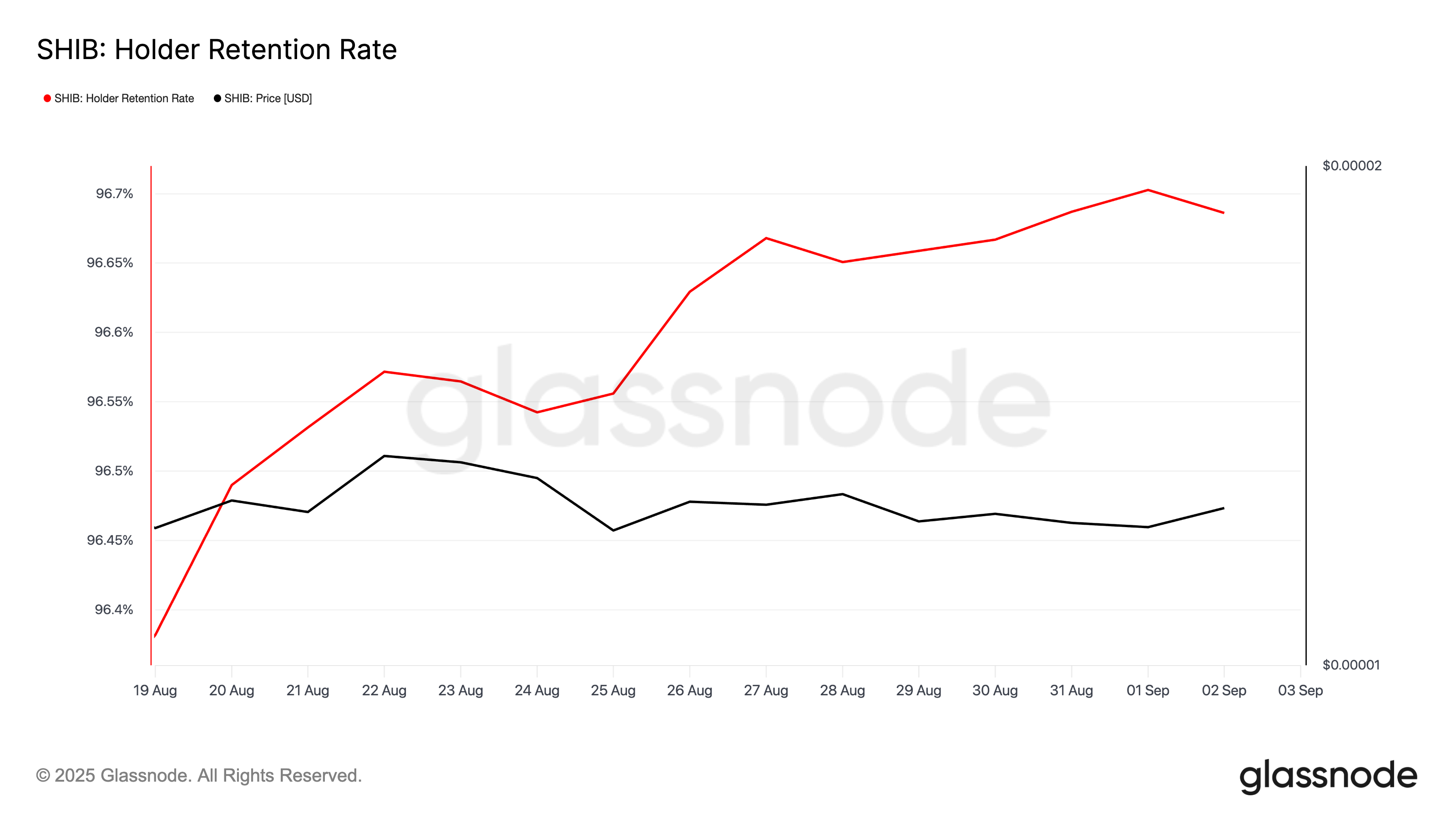 Vasat performansa rağmen, çoğu SHIB sahibi token’larını elinde tutmaya devam etti. Bu durum, artan Holder Retention Rate metriği ile yansıtılıyor.
