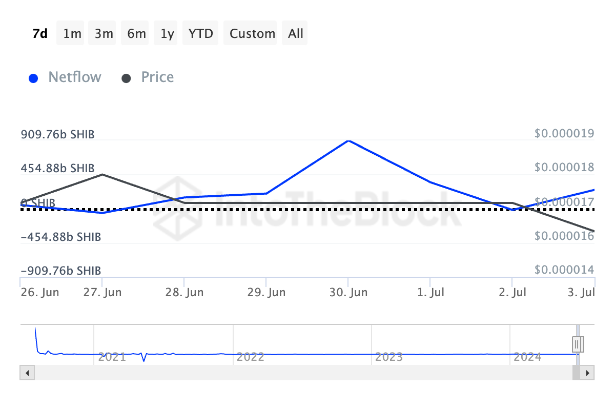 Önde gelen meme coin Shiba Inu (SHIB), son haftada büyük yatırımcıların borsalara yaptığı coin akışında önemli bir düşüş yaşadı.