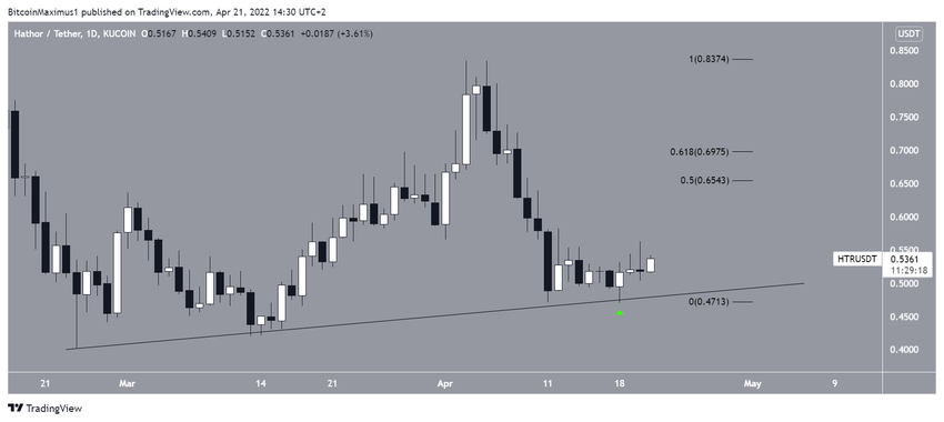Hathor (HR) 24 Şubat’ta yükselen bir destek çizgisini takip etmeye ve artış kaydetmeye başladı. Böylece 18 Nisan’da destek çizgisinden sıçrama gerçekleşti. Ancak altcoin fiyatında henüz önemli bir artış görülmedi.