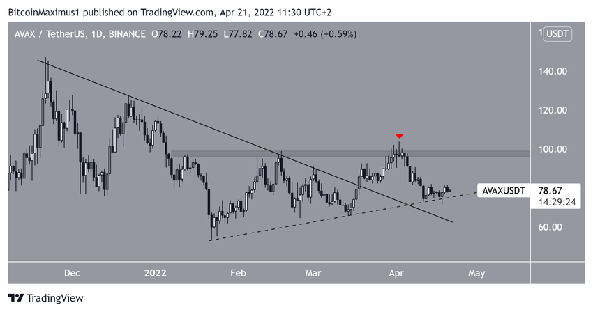 Avalanche (AVAX) 21 Kasım 2021’de tüm zamanların en yüksek seviyesi olan 147 dolara ulaştı. Ancak fiyat, rekor seviyenin ardından alçalan bir direnç çizgisini takip etmeye ve değer kaybetmeye başladı. Böylece 22 Ocak’ta 57 dolar seviyesinde bir dip oluştu.