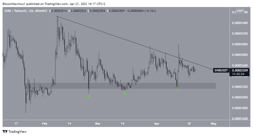 Shiba Inu (SHIB) 13 Şubat’tan bu yana alçalan bir direnç çizgisini takip ederek düşüş sergiliyor. Ancak bu süreçte, fiyatın 0,000022 dolardaki yatay bölgeden üç kez sıçradığı görülüyor. Son sıçrama ise 12 Nisan’da gerçekleşti.
