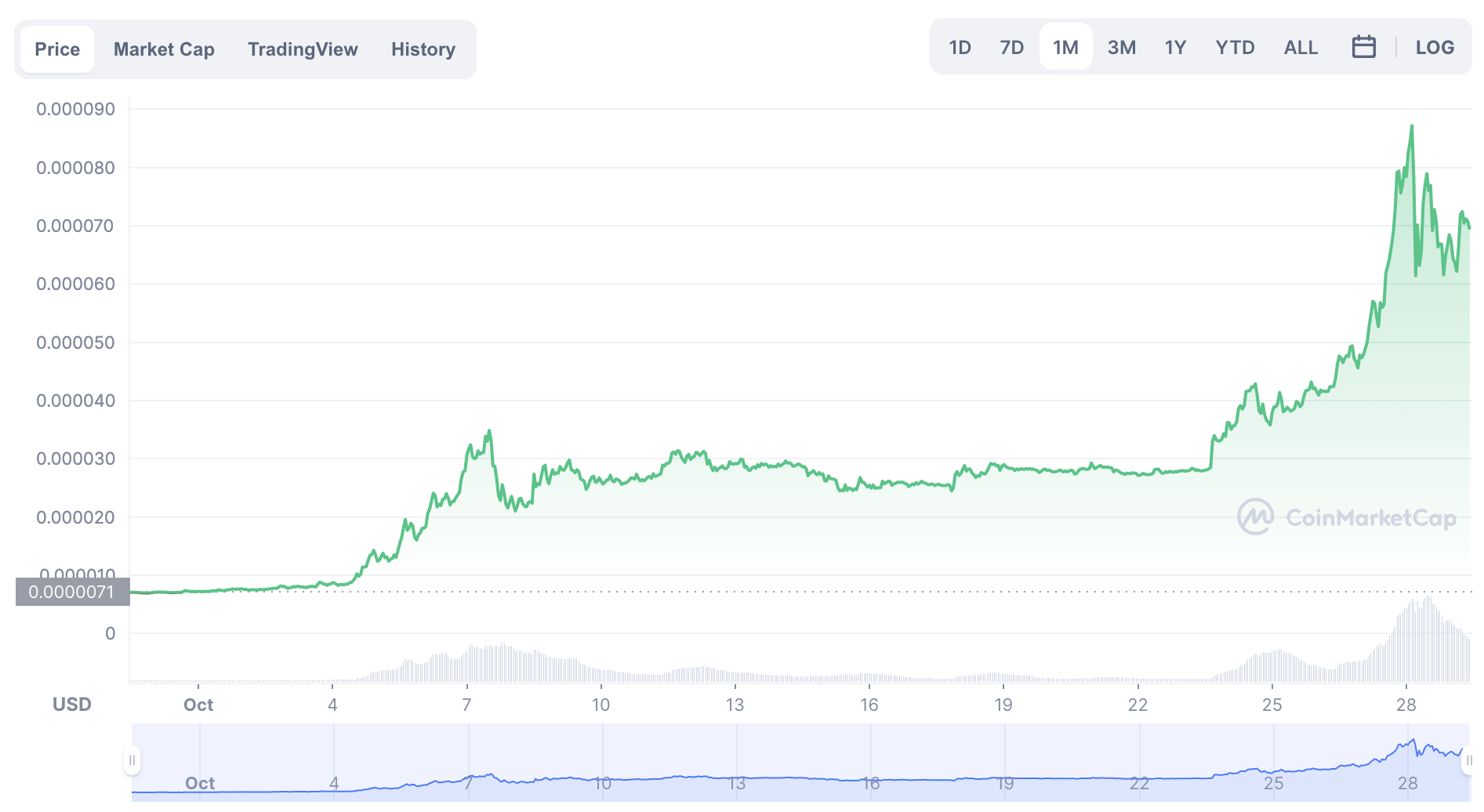 Uzun süre sessizliğini koruyan ve bu dönemde bir cüzdan çıkaran Shiba’nın son rallisinin ilk adımı Coinbase listelemesi oldu. Eylül ayında yaklaşık %30’luk bir değer kazancı ile harekete geçen meme token, asıl patlamasını ekim ayında gerçekleştirdi. SHIB, bu süreçte on katın üzerinde değer kazanarak 0,000006 dolardan 0,000884 dolara yükseldi.