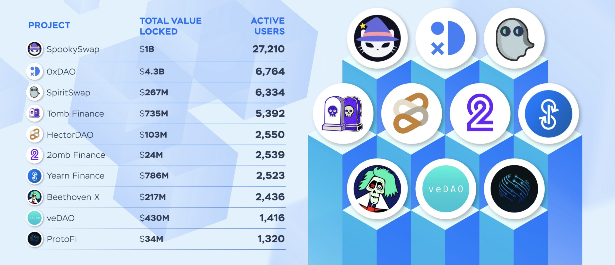 Fantom ekosisteminde başlatılan merkeziyetsiz uygulamalar (dApp) arasında günlük kullanıcı sayısı en fazla olan dApp SpookySwap (BOO) oldu. BOO’nun günlük kullanıcı sayısı 30 bine yaklaşıyor. BOO’nun ardından 0xDAO, SpiritSwap ve Tomb Finance en çok tercih edilen uygulamalar olarak ön plana çıkıyor.