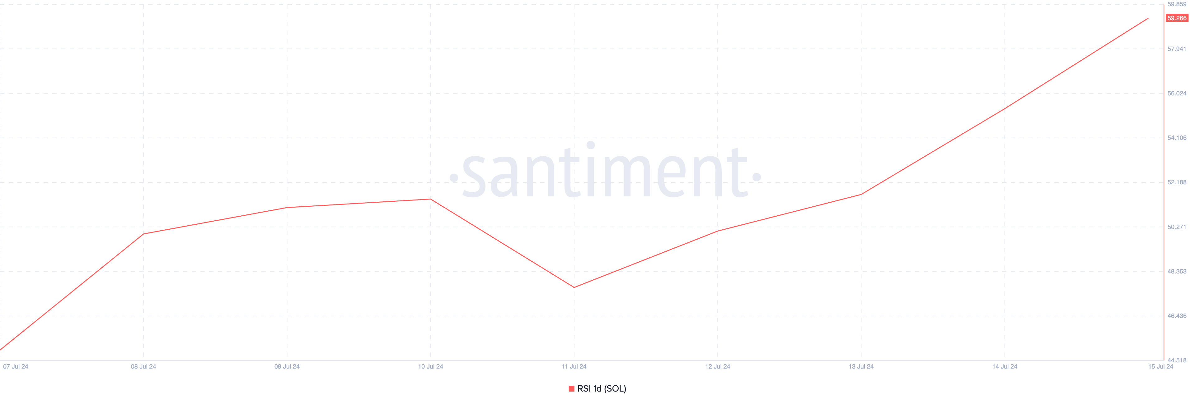 Ayrıca, bu yazı itibariyle, madalyonun Göreceli Güç Endeksi (RSI) 59.26’da yükseliş trendinde. Bu, satın alma faaliyetinin SOL piyasasındaki satış baskısından daha yüksek olduğunu doğrular.