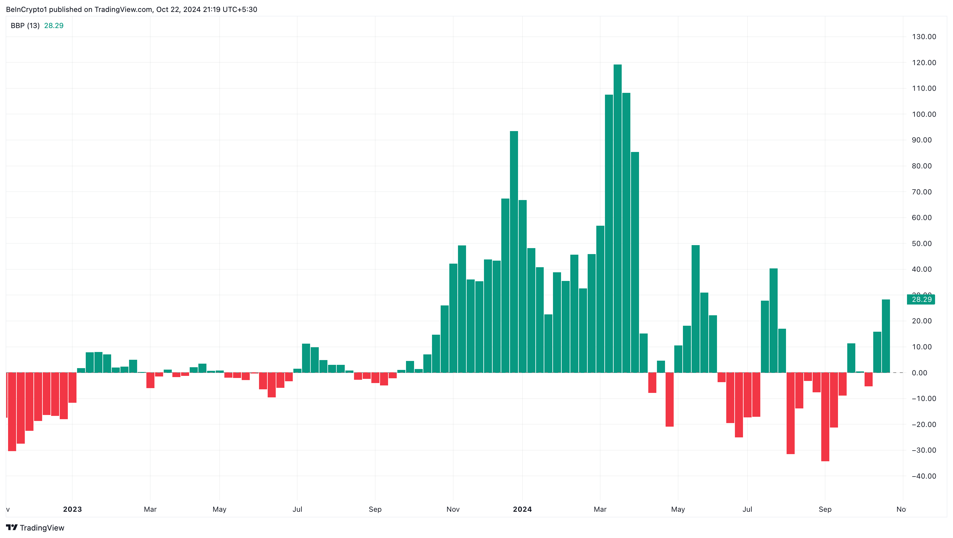 Ayrıca, grafikteki Boğa Ayı Gücü (BBP), boğaların kontrolde olduğunu ve tahminin gerçekleşebileceğini gösteriyor. BBP, alıcıların gücünün boğalardan daha mı güçlü olduğunu yoksa ayıların üstün mü olduğunu gösterir.