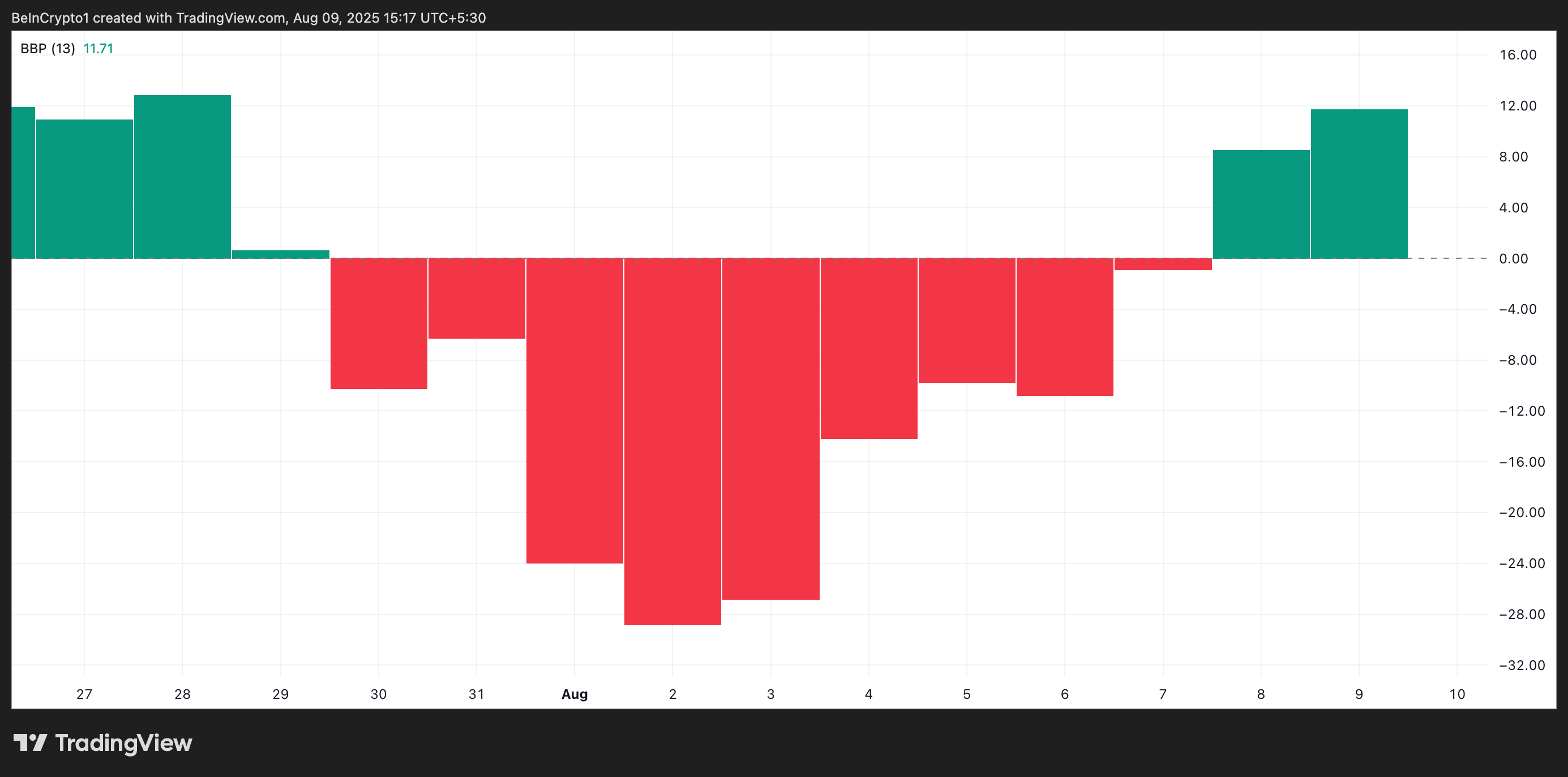 Elder-Ray Endeksi, alıcılar ve satıcılar arasındaki güç dengesini ölçer. Değeri pozitif olduğunda, yükseliş yönlü baskı düşüş yönlü baskıyı aşar ve alıcılar piyasa kontrolünü ele geçirir.