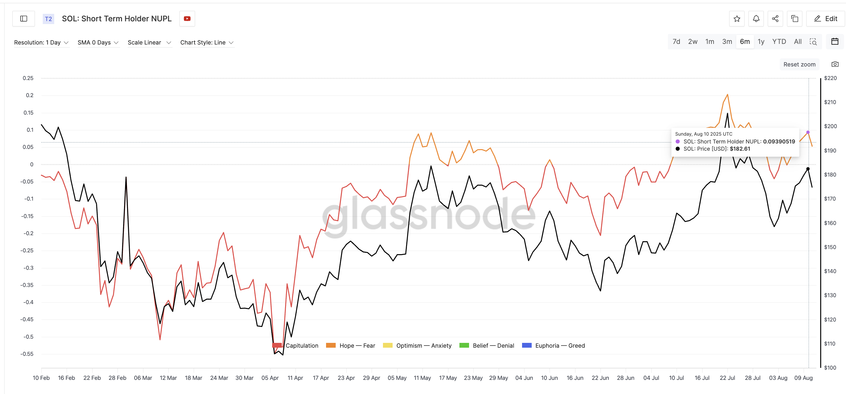 Solana’nın kısa vadeli yatırımcıları, nispeten yüksek gerçekleşmemiş karlarla oturuyor ve STH-NUPL (Net Gerçekleşmemiş Kar/Zarar) şu anda 0,093 seviyesinde. Bu rakam, 10-13 Mayıs tarihlerinde gözlemlenen seviyelere yakın; o dönemde SOL fiyatı 183 Dolar’dan 131 Dolar’a düzeltme yapmıştı. Bu yüksek NUPL, kısa vadeli yatırımcıların kar/zarar bölgesinde olduğunu ve karları kilitlemenin daha cazip hale geldiğini gösteriyor.
