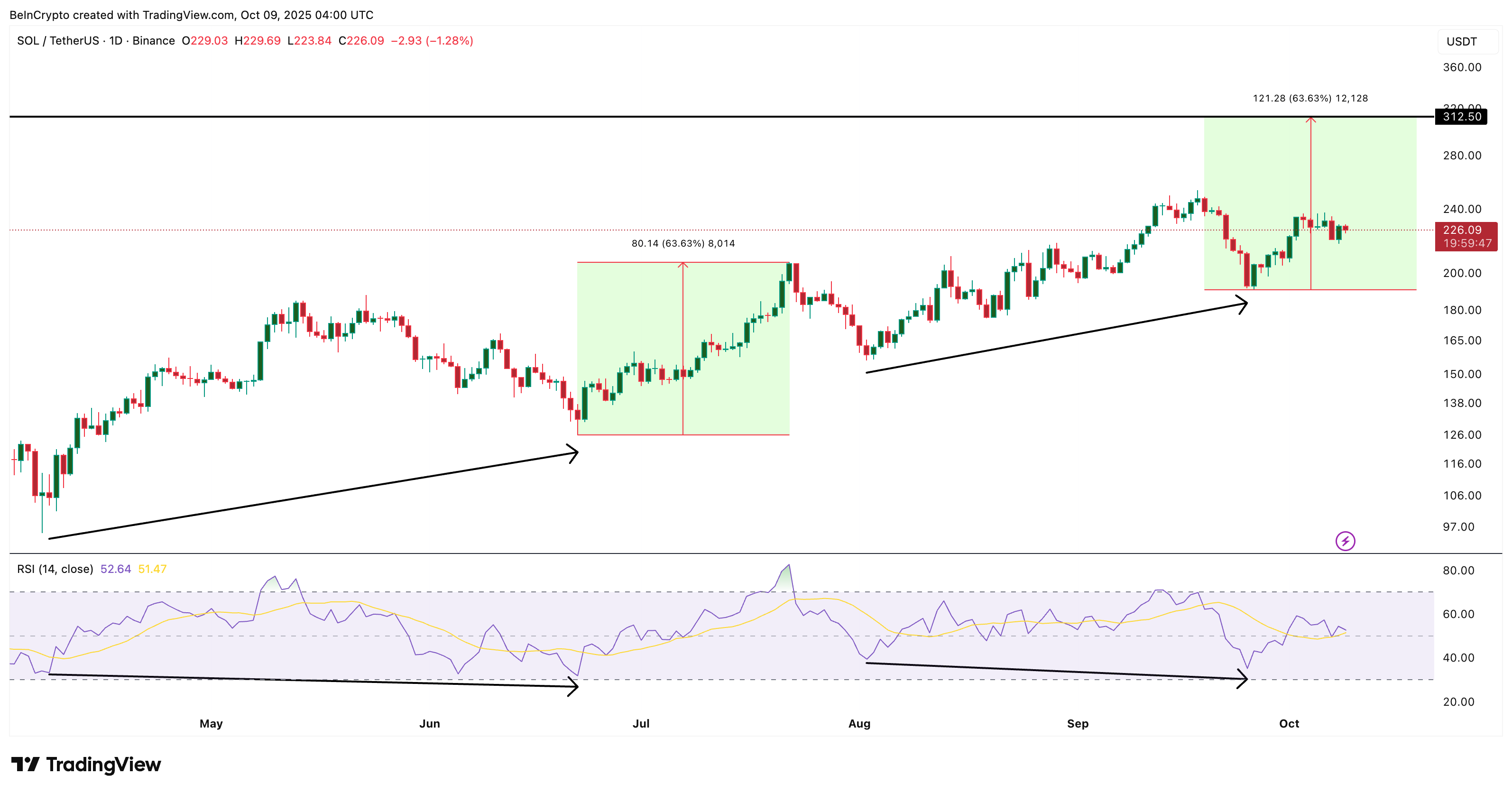 Eğer Solana aynı yolu izlerse, fiyat Ekim sonuna kadar 312 Dolara ulaşabilir, bu da önceki rallinin zamanlamasını ve ölçeğini kabaca yansıtıyor.