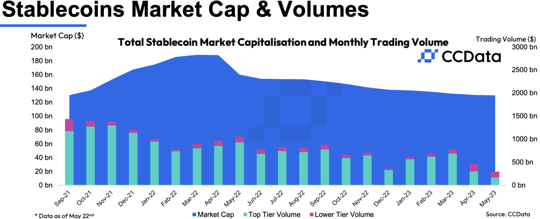 Stablecoin’ler, kripto para piyasasına çekilen sermayenin bir işareti olarak değerlendiriliyor. Bu bakıma stablecoin piyasasının art arda 14. ay küçülmesi soru işaretlerini çoğaltıyor. CCData raporuna göre, bu ay stablecoin’lerin toplam piyasa değeri 130 milyar dolara geriledi. Bu gerileme, Eylül 2021’den bu yana görülen en düşük seviyeyi temsil ediyor.