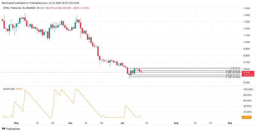 STRK’nın mevcut fiyat rallisi, tüm zamanların en düşük seviyesi olan 0,46 dolara düştükten sonra 5 Temmuz’da başladı. O zamandan beri, altcoin’in fiyatı %19’un üzerinde fırladı.