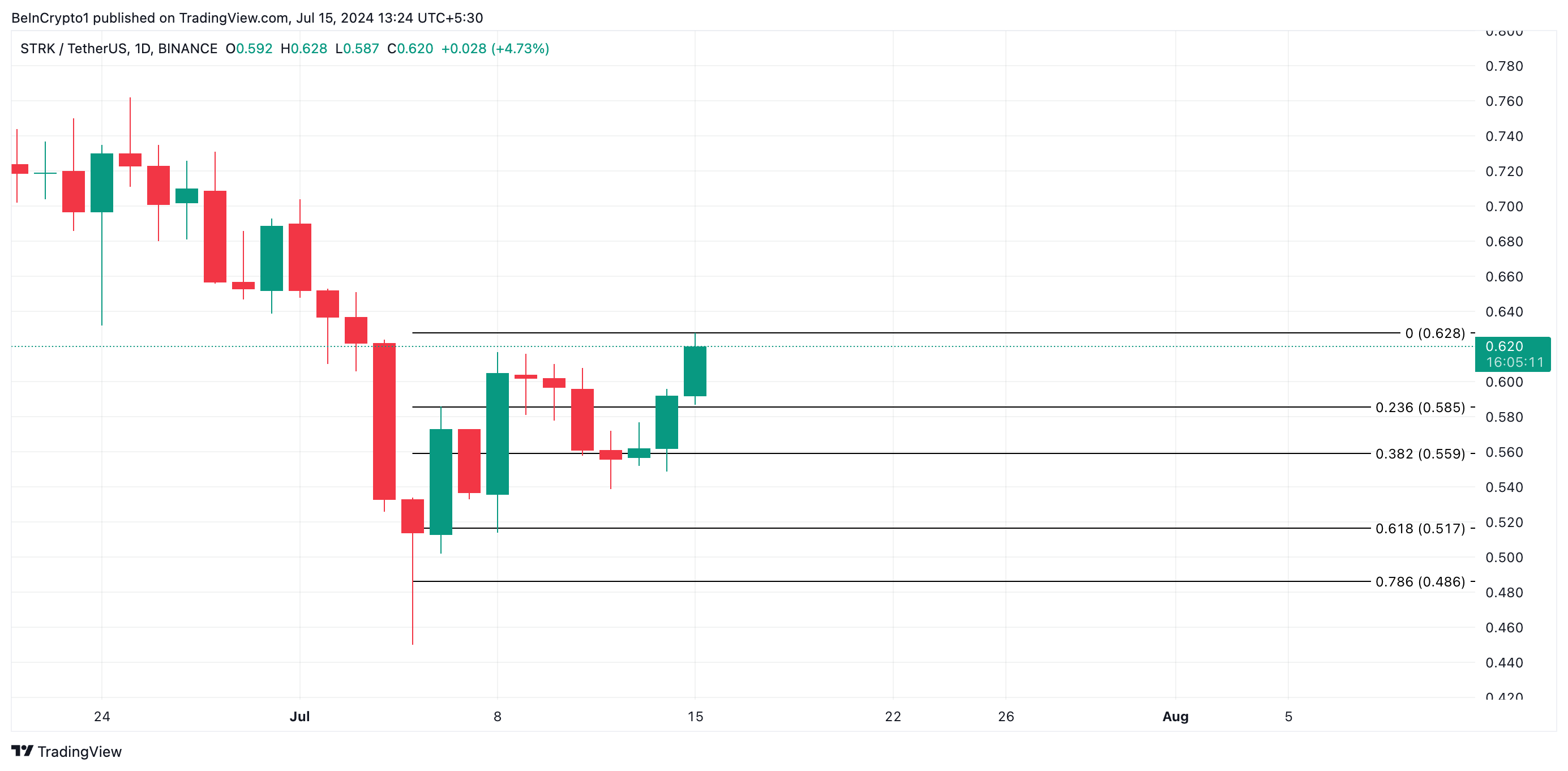 Ancak, kâr alma faaliyeti başlarsa, STRK’nın fiyatı 0,5 $ fiyat seviyesine düşebilir.