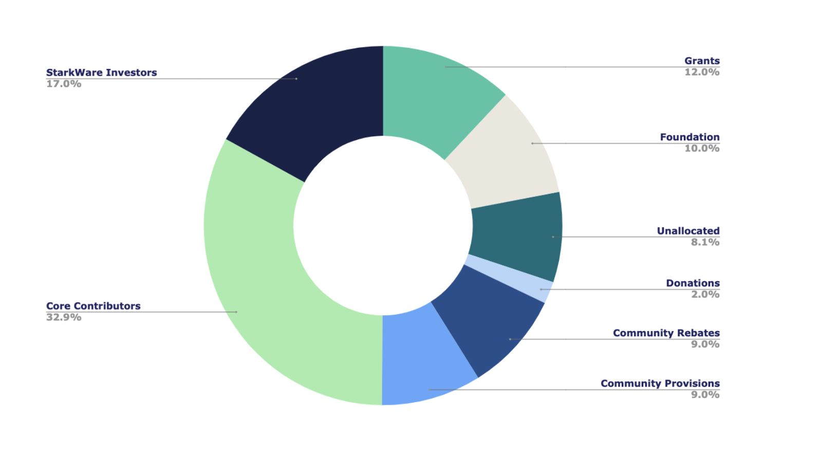 - %32,9 — Temel Katkıda Bulunanlar: StarkWare ve çalışanları, danışmanları ve StarkNet yazılım geliştirici ortakları
