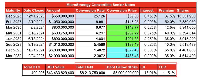 En son verilere göre, Strategy yaklaşık 43,4 milyar Dolar değerinde Bitcoin tutarken, 8,2 milyar Dolar borcu bulunuyor. Bu nedenle, kaldıraç oranı yaklaşık %19 civarında.