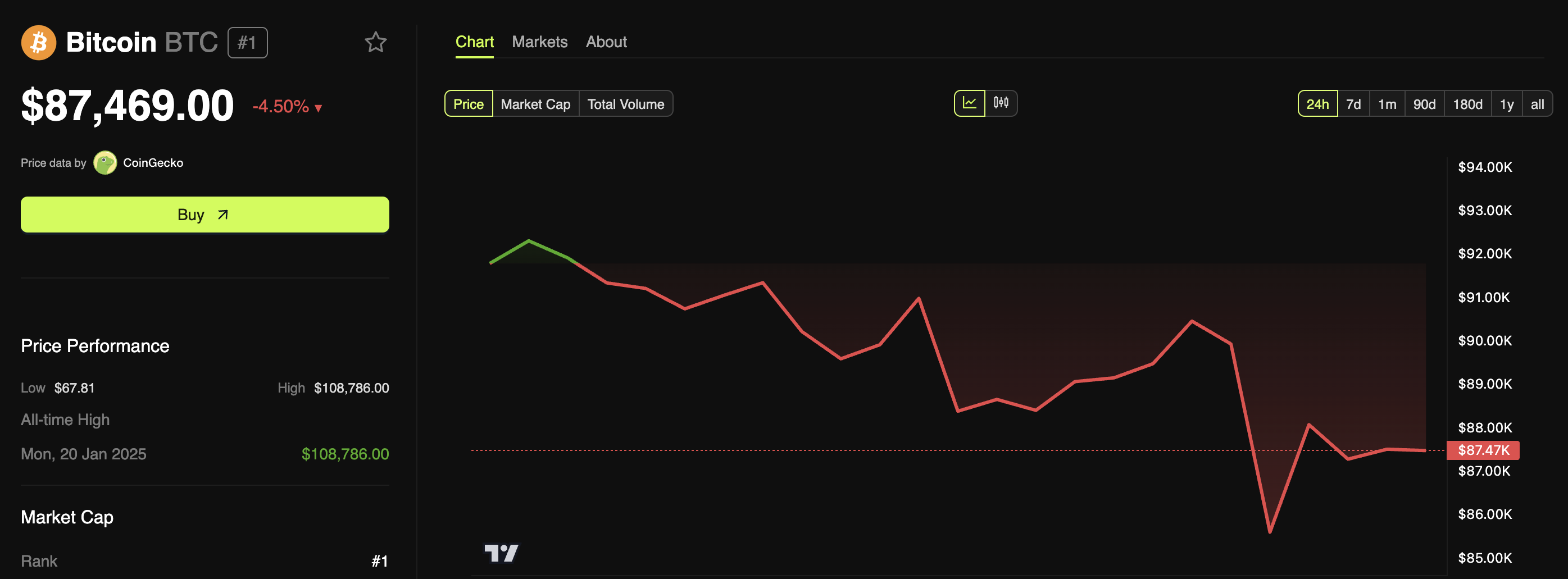 5 Mart’ta bu seviyeyi kısa süreliğine yeniden kazandıktan sonra, Bitcoin tekrar 90.000 Dolar’ın altına düştü. Basın saatine göre, Bitcoin 87.469 Dolar’dan işlem görüyor ve son 24 saatte %4,5’lik bir düşüş kaydetti.