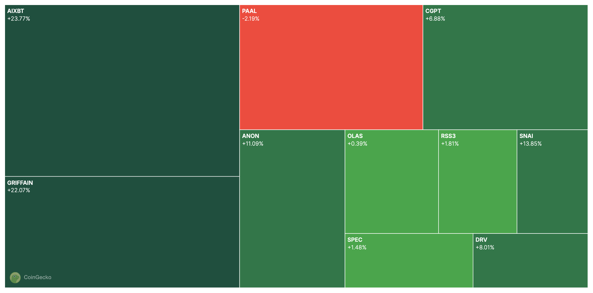 Önemli DeFAI token’ları toparlanma belirtileri gösteriyor—AIXBT son 24 saatte neredeyse %20 arttı. ARC %42 yükseldi ve SwarmNode.ai geçen hafta %25’ten fazla kazanç sağladı.