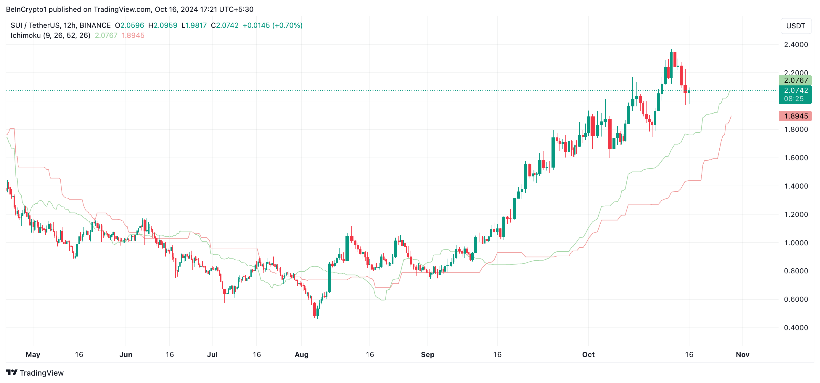 Mevcut fiyatıyla, SUI, 1,97 dolarlık direnç seviyesinin hemen üzerinde işlem görüyor. Artan satış baskısı bu seviyenin tutunamamasına neden olursa, SUI’nin fiyatı Ichimoku Bulutu’na destek arayacak, bu bulut piyasa trendlerini ve momentumunu izler ve destek/direnç seviyeleri olarak işlev görür.
