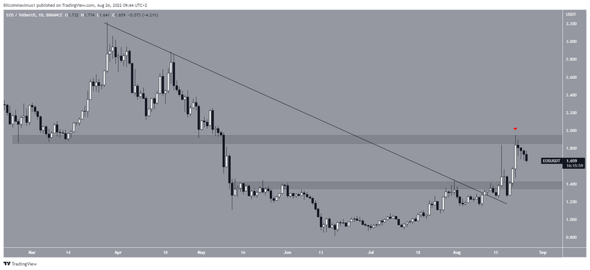 EOS, 18 Haziran’dan bu yana artış gösteriyordu ve 12 Ağustos’ta alçalan direnç çizgisinden çıkış yapmayı başardı. Bunun sonucunda 22 Ağustos’ta 1,95 dolara kadar yükseliş yaşandı.