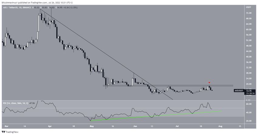 AXS, kasım ayında 166 dolara ulaşarak rekor kırdıktan sonra düşüşe geçti. Düşüşler sonucunda şimdiye kadar haziranda 11,85 dolara kadar gerileme yaşandı. Bu noktada bir sıçrama gerçekleşse de önemli bir yukarı yönlü hareket başlayamadı.