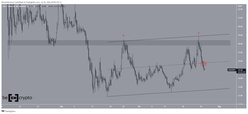 Ancak Axie Infinity fiyatı, 18 dolar direnç bölgesinden red yedi (kırmızı simge) ve ardından sert bir düşüş yaşandı.