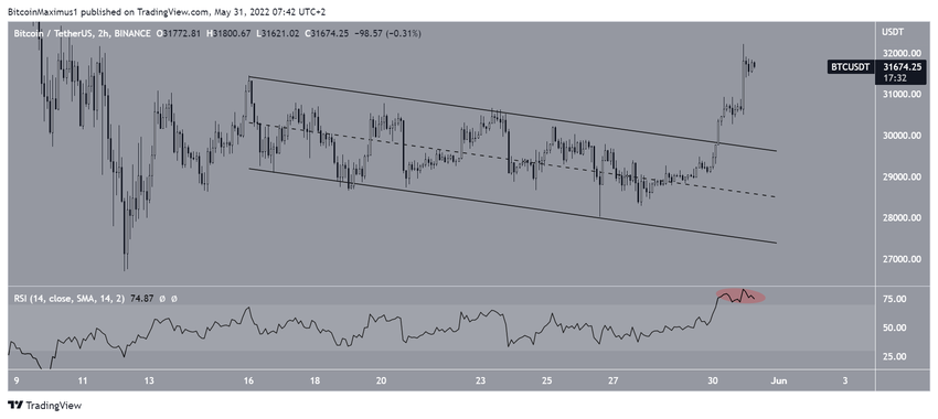 İki saatlik grafiğe bakıldığında, Bitcoin fiyatının 16 Mayıs’ta alçalan bir paralel kanal içinde hareket etmeye başladığı ancak 30 Mayıs’ta kanaldan çıkış gerçekleştirdiği görülüyor.