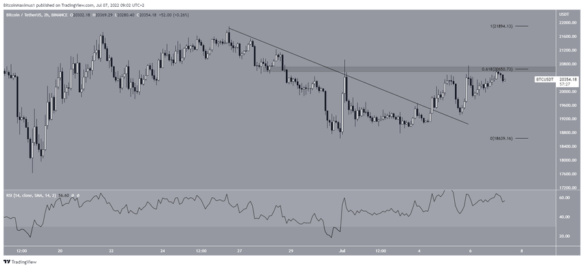 Son olarak iki saatlik grafik, lider kripto para birimi BTC’nin alçalan direnç çizgisinden çıkış yaptığını ve 20.600 dolar direncinin üzerine kendini atmak için 3 girişimde bulunduğunu gösteriyor.