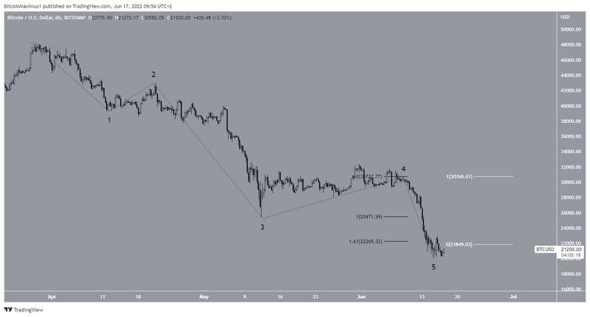 Kısa vadeli dalga sayımı, önde gelen kripto para birimi Bitcoin’in beş dalgalı aşağı yönlü hareketini tamamlamış olabileceğini gösteriyor (siyah). Bu düşüş nisan ayının sonunda başlamıştı.