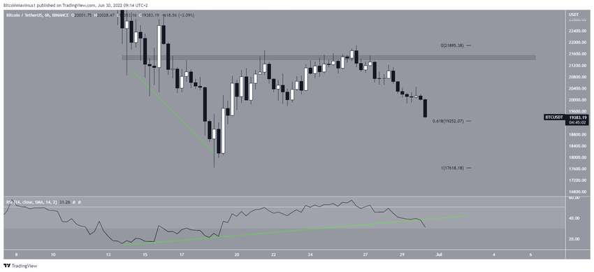 Bitcoin (BTC), 0.618 Fib düzeltme destek seviyesi olan 19.250 doların üzerinde kendisine bir başka destek bulmakta zorlanıyor. Eğer başarısız olursa, fiyat haziran ayının dip seviyelerinin de altına düşebilir.