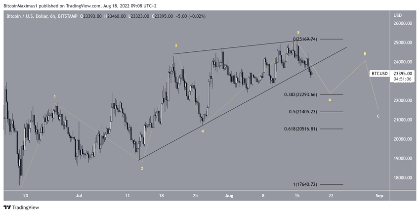Şu anda gerçekleşen düşüşten dolayı, ana dalga sayımı analizine göre Bitcoin önde gelen bir diyagonalin beşinci dalgasını tamamladı ve böylece yükselen takoz şeklini aldı. Takozdan yaşanan kırılım, bunun A-B-C düzeltme yapısının A dalgasının bir parçası olduğunu gösteriyor.