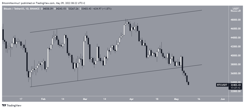 Bitcoin (BTC) 10 Kasım’da tüm zamanların en yüksek seviyesine ulaştı (kırmızı ok). Ancak daha sonra bir düşüş hareketi başladı. Böylece 23 Ocak’ta 32.917 dolar seviyesinde bir dip meydana geldi. Diğer yandan düşüş hareketi, dip oluştuktan sonra sona erdi. Ayrıca bu süreçte, yükselen bir paralel kanalın destek çizgisi onaylandı.