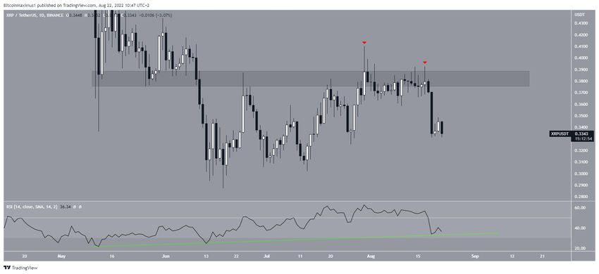 XRP, 0,38 dolar bölgesinden iki kere red yedi (kırmızı simgeler) ve her seferinde yukarı sarkan uzun fitiller oluşturdu. Sonuç olarak bu durum, 0,33 dolara kısa vadeli düşüşlerine yaşanmasına sebep oldu.