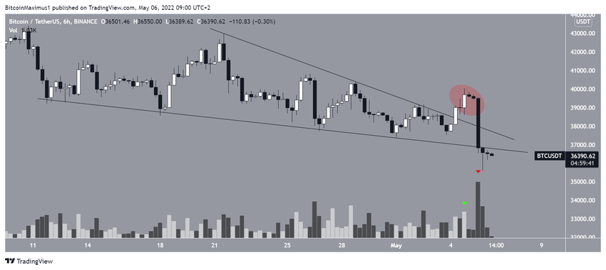 Bitcoin (BTC) 4 Mayıs’ta alçalan takoz formasyonundan çıkış gerçekleştirdi. Ancak yükseliş hareketi, süreklilik kazanamadı. Bunun sonucunda fiyat, 5 Mayıs’ta sert bir düşüş yaşadı.