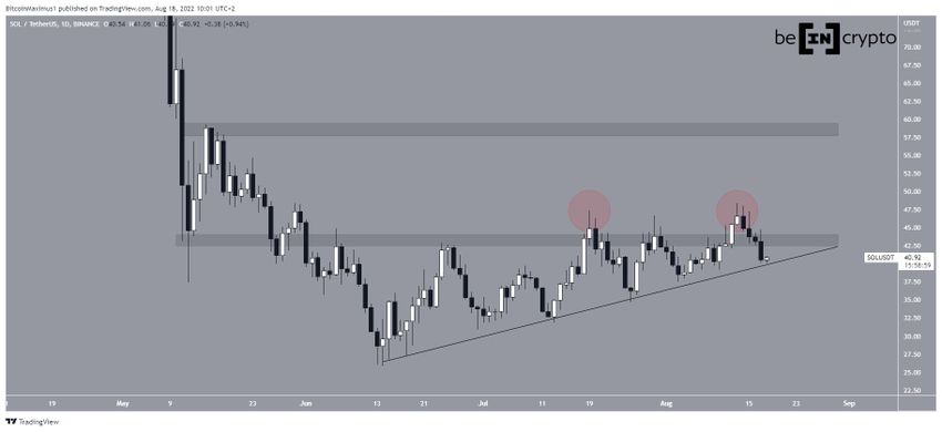 SOL, 14 Haziran’dan bu yana yükselen destek çizgisinin üzerinde artış gösteriyor. Fiyat, bu çizgiye birkaç kere dokundu. Son olarak 26 Temmuz’da çizgi test edildi ve destek olarak onaylandı.