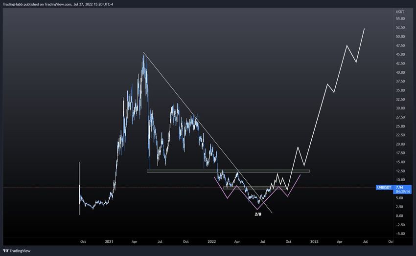 Ünlü kripto para trader’ı @Thetradinghubb UNI grafiği paylaştı. Grafiğe göre, popüler altcoin uzun vadeli yükseliş trendini başlatmış olabilir.