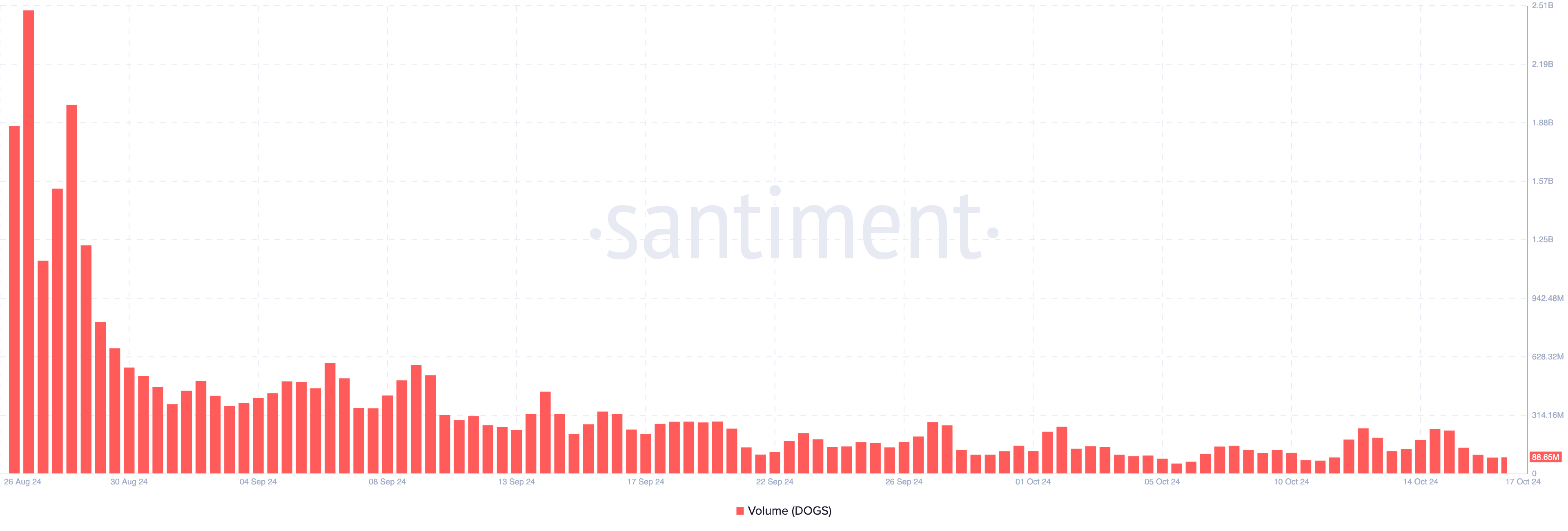 Bir başka neden DOGS’ın fiyatının tekrar düşebileceği ise hacmidir. Meme coin piyasaya sürüldüğünde, hacim 2 milyar doların üzerindeydi, bu da piyasanın ona büyük ilgi gösterdiğini gösteriyordu.