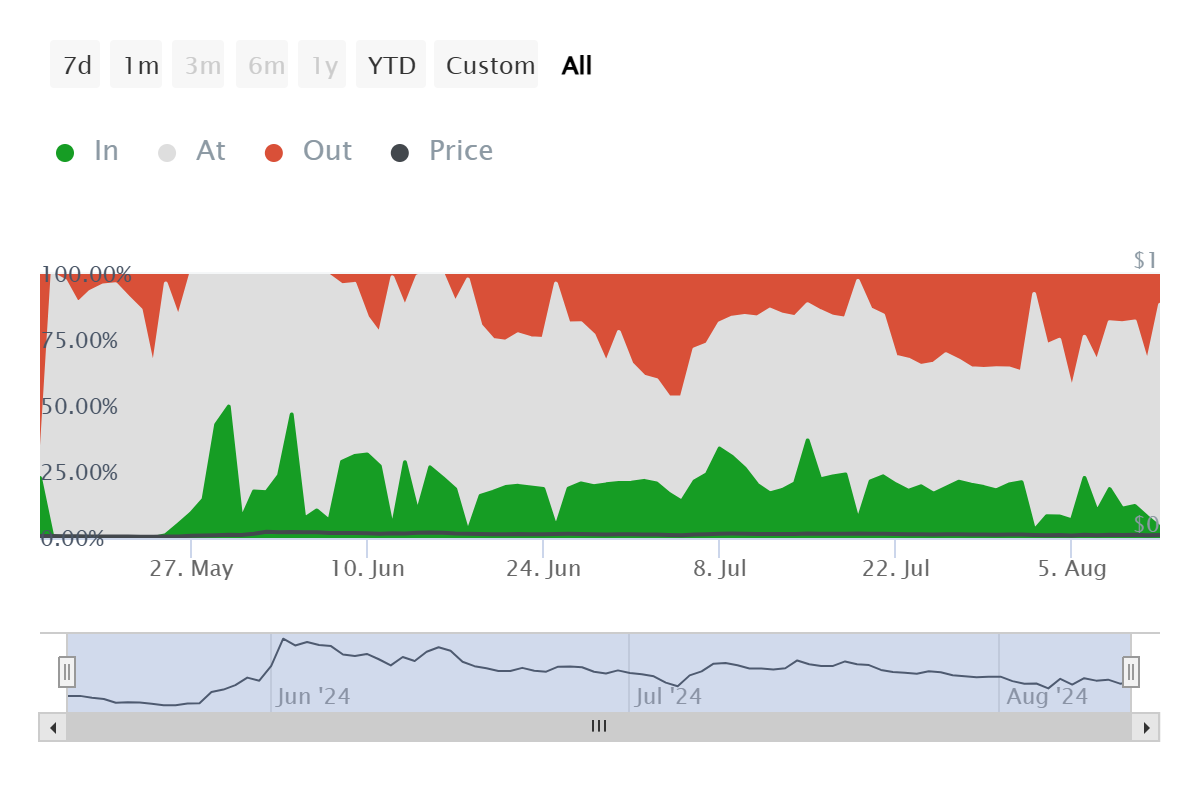 Ağ üzerinde işlem yapan yatırımcılar kârda olduklarında satış yapma eğilimindedirler. Hakimiyetleri %25’in üzerindeyse, fiyatı önemli ölçüde olumsuz etkileyebilir. Ancak, Notcoin’de durum böyle olmadığı için Telegram coin’in yükseldiği not edilebilir.
