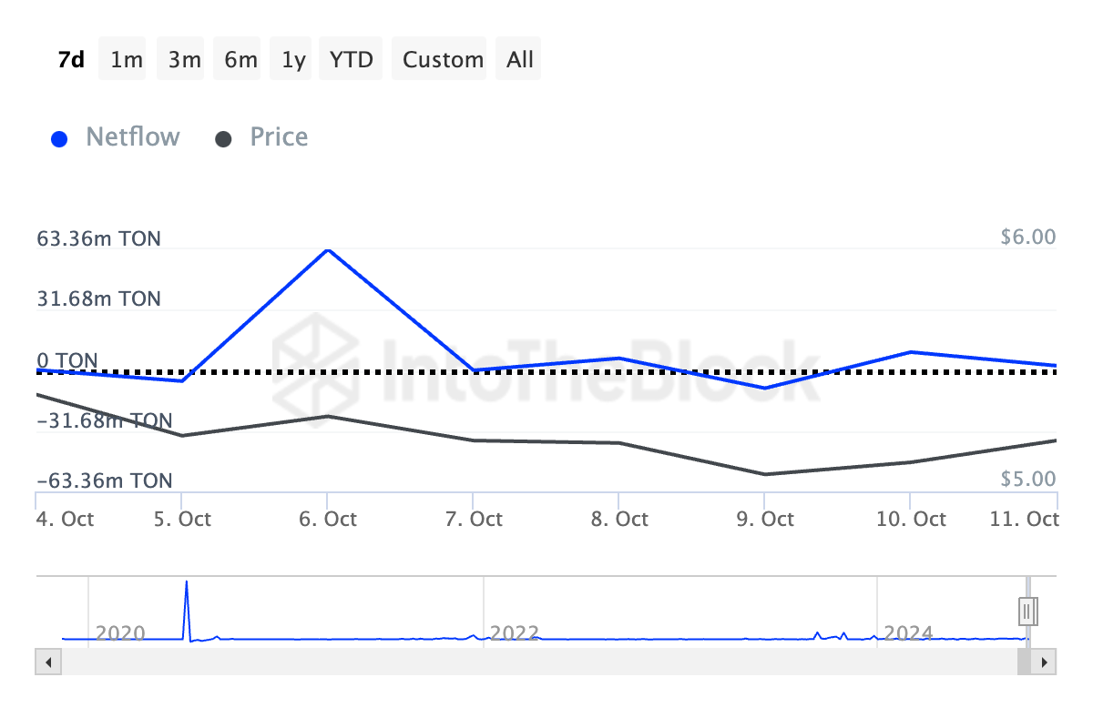 Ayrıca, TON’un büyük sahiplerinin sürekli düşennet akışı bu kötümser görünümü daha da destekliyor. IntoTheBlock’a göre, dolaşımdaki arzının %0,1’inden fazlasına sahip büyük sahiplerin net akışı geçen hafta %143 düştü.