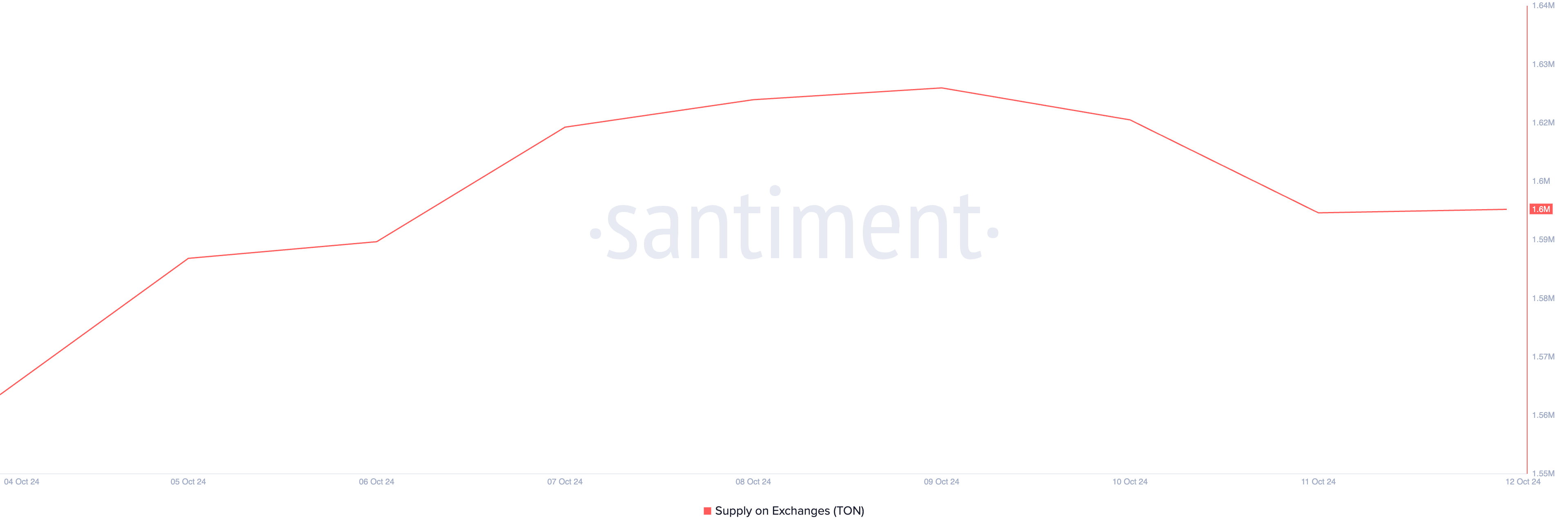 Toncoin’in borsalardaki arzı geçtiğimiz hafta boyunca arttı. Santiment’in verilerine göre, şu anda 1,6 milyon TON token’ı bulunuyor ve sadece yedi gün içinde %7 artış gösterdi.