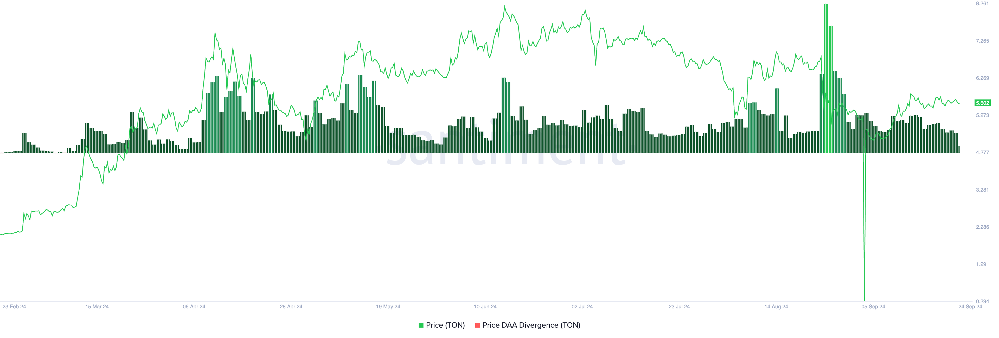 Ayrıca, TON’un olumlu fiyat günlük aktif adres (DAA) sapması bu görünümü destekliyor. Bu metrik, bir varlığın fiyat hareketlerini günlük aktif adreslerindeki değişikliklerle ölçer ve basın zamanında %119.08’dir.