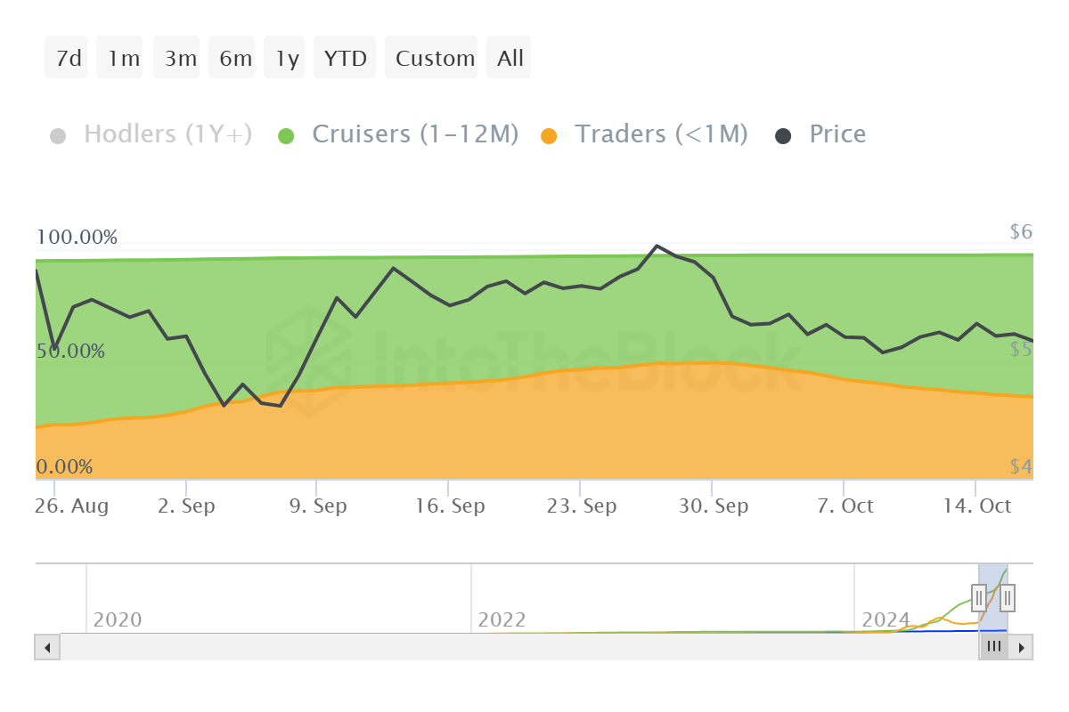 Bu değişiklik önemli çünkü genellikle bir aydan az süreyle tutan kısa vadeli sahipler, hızlıca satma eğilimindedir. Buna karşın, orta vadeli sahipler varlıklarını bir ila on iki ay arasında tutma eğiliminde olup, bu genellikle fiyat istikrarını destekler. Orta vadeli sahiplerin artan hakimiyeti, Toncoin’in fiyatı için olumlu bir işaret olarak görülüyor.