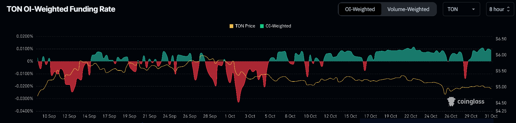 Çoğu trader Toncoin rallisine bahse girerken, genel piyasa hissiyatı iyimserliğe doğru eğilim gösteriyor. Pozitif Finansman Oranları, genellikle trader’ların varlığın yukarı yönlü ivmesine yatırım yaptıkları beklenen fiyat hareketlerinin göstergeleri olarak hizmet eder. Toncoin için bu eğilim, altcoin’in mevcut düşüş trendinden çıkma çabalarını daha da destekleyebilir.
