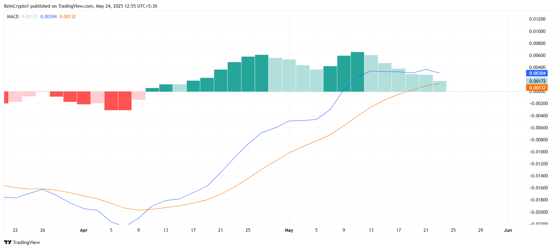 Daha geniş bir ölçekte, MACD gibi teknik göstergeler, yükseliş momentumunun zayıflayabileceğine işaret ediyor. MACD, HBAR için aylık yükseliş trend’inin sonunu işaret edecek bir düşüş kesişimine yaklaşıyor.