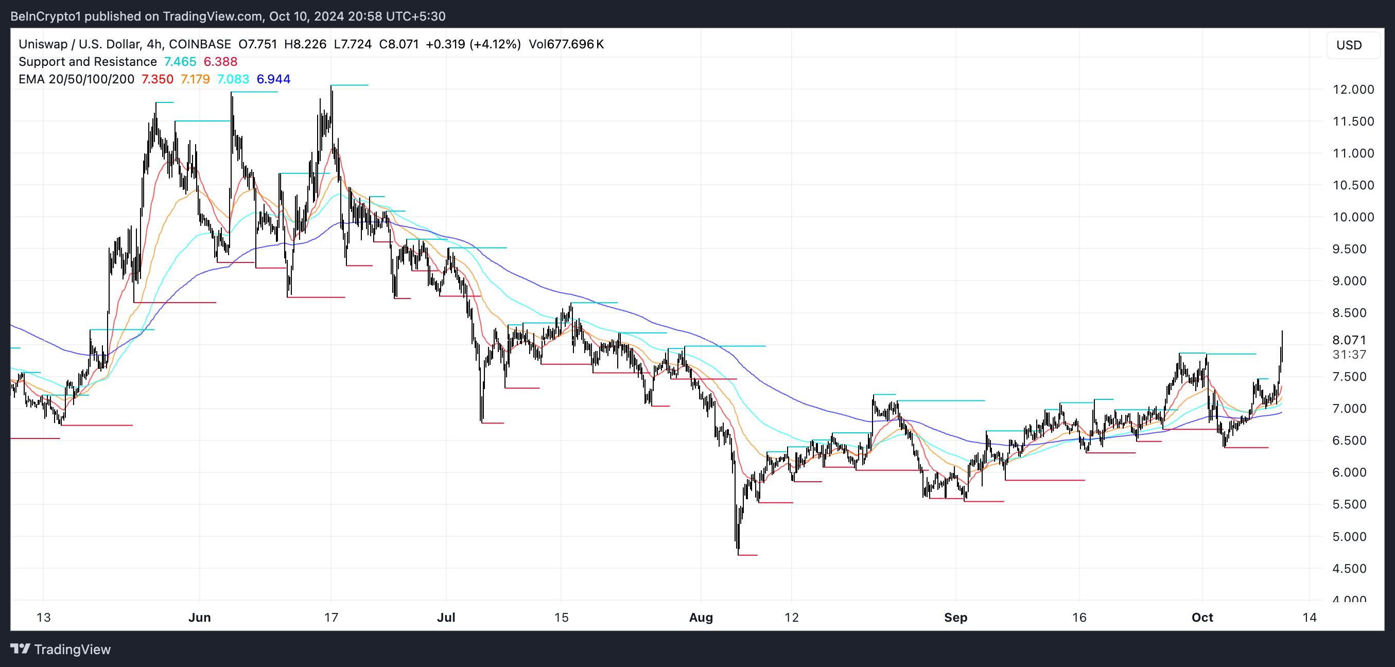 UNI Fiyat Tahmini: EMA Çizgileri Potansiyel Yükselişi İşaret Ediyor