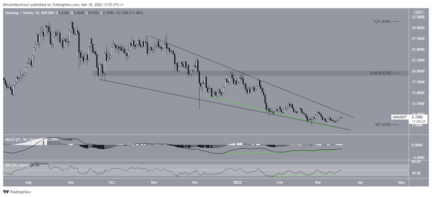 Uniswap (UNI) 24 Şubat tarihinden bu yana yükseliyor. Ayrıca fiyatın alçalan takoz formasyonundan çıkış gerçekleştirmesi bekleniyor.