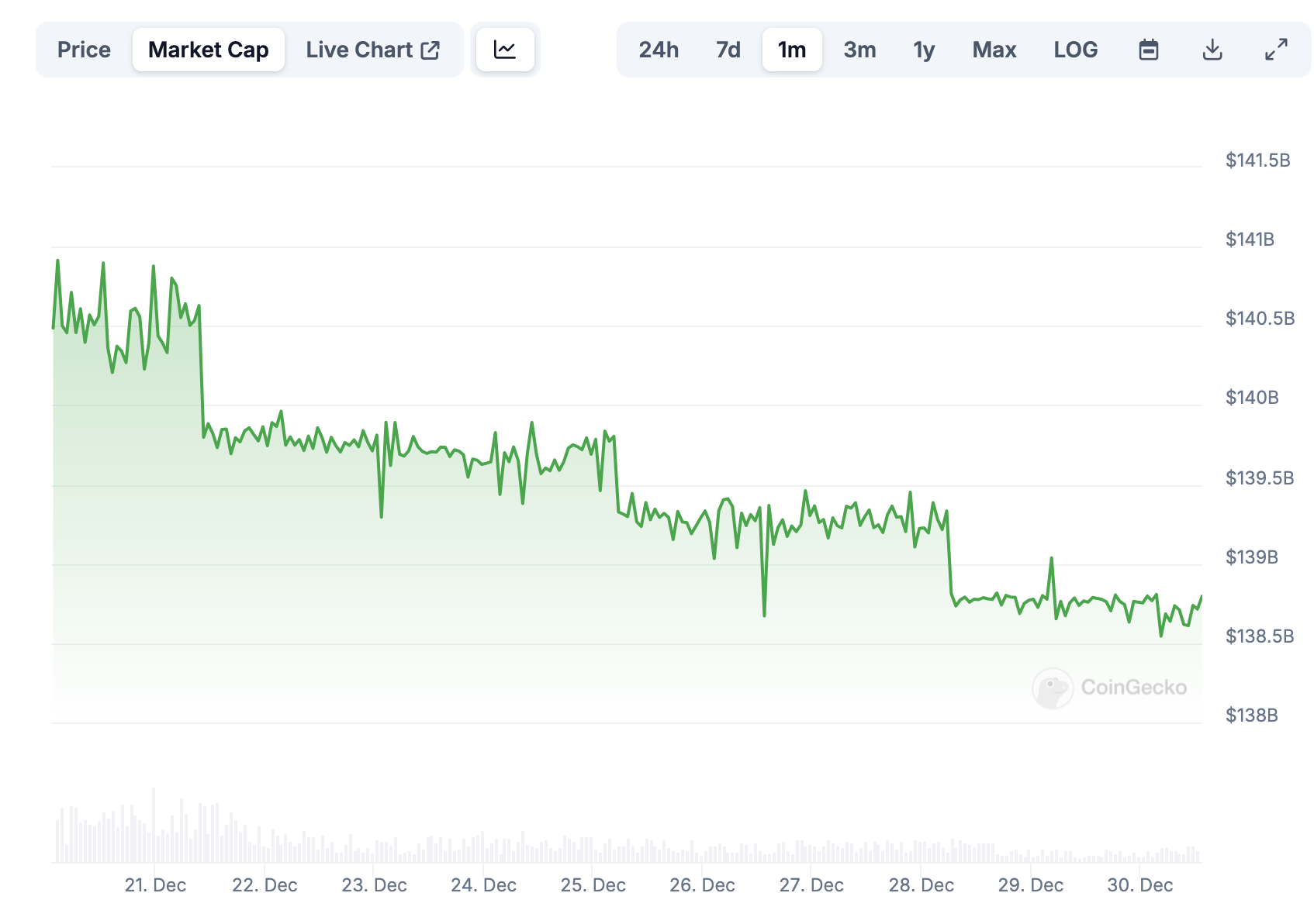 Buna karşılık, CoinMarkCap’e göre, USDT’nin piyasa değeri geçen hafta 140,5 milyar dolardan 138 milyar dolara düştü, bu bir yıl süren sürekli büyümenin en büyük düşüşü oldu.