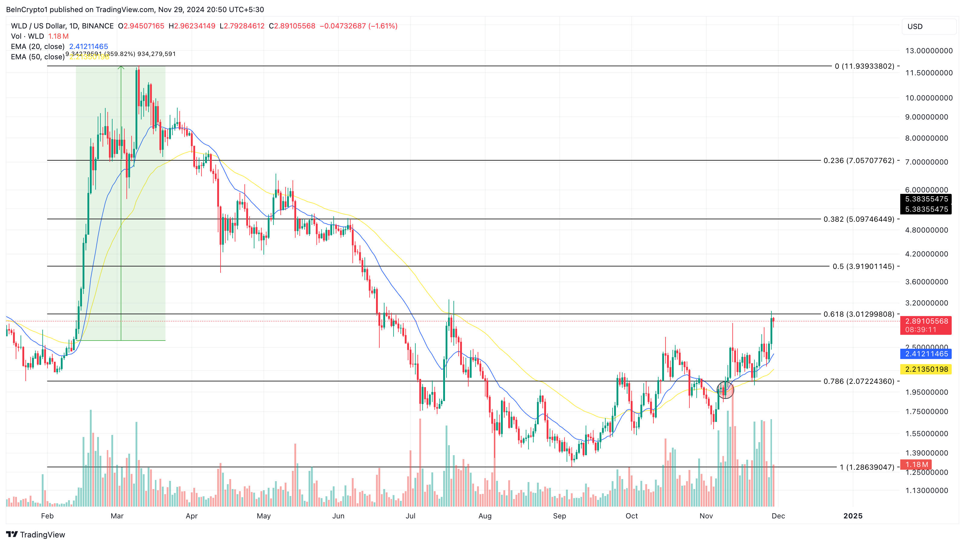Ancak, token tekrar EMA’nın altına düşerse, WLD fiyat tahmini gerçekleşmeyebilir. Bunun yerine, 2,07 dolara düşebilir.
