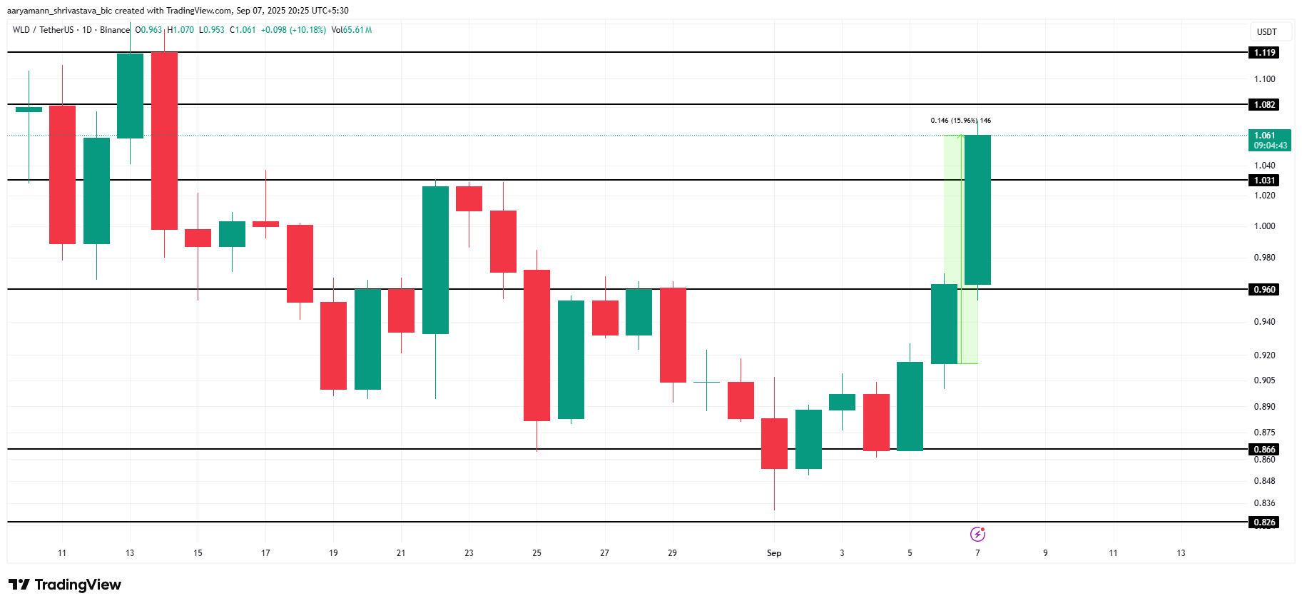 WLD, son 24 saatte neredeyse %16 artarak en iyi performans gösteren altcoin’lerden biri olarak öne çıktı. Altcoin, 1,06 Dolar seviyesinde işlem görüyor ve 1,08 Dolar, fiyatın anlık yönünü şekillendirebilecek önemli bir engel olarak duruyor.