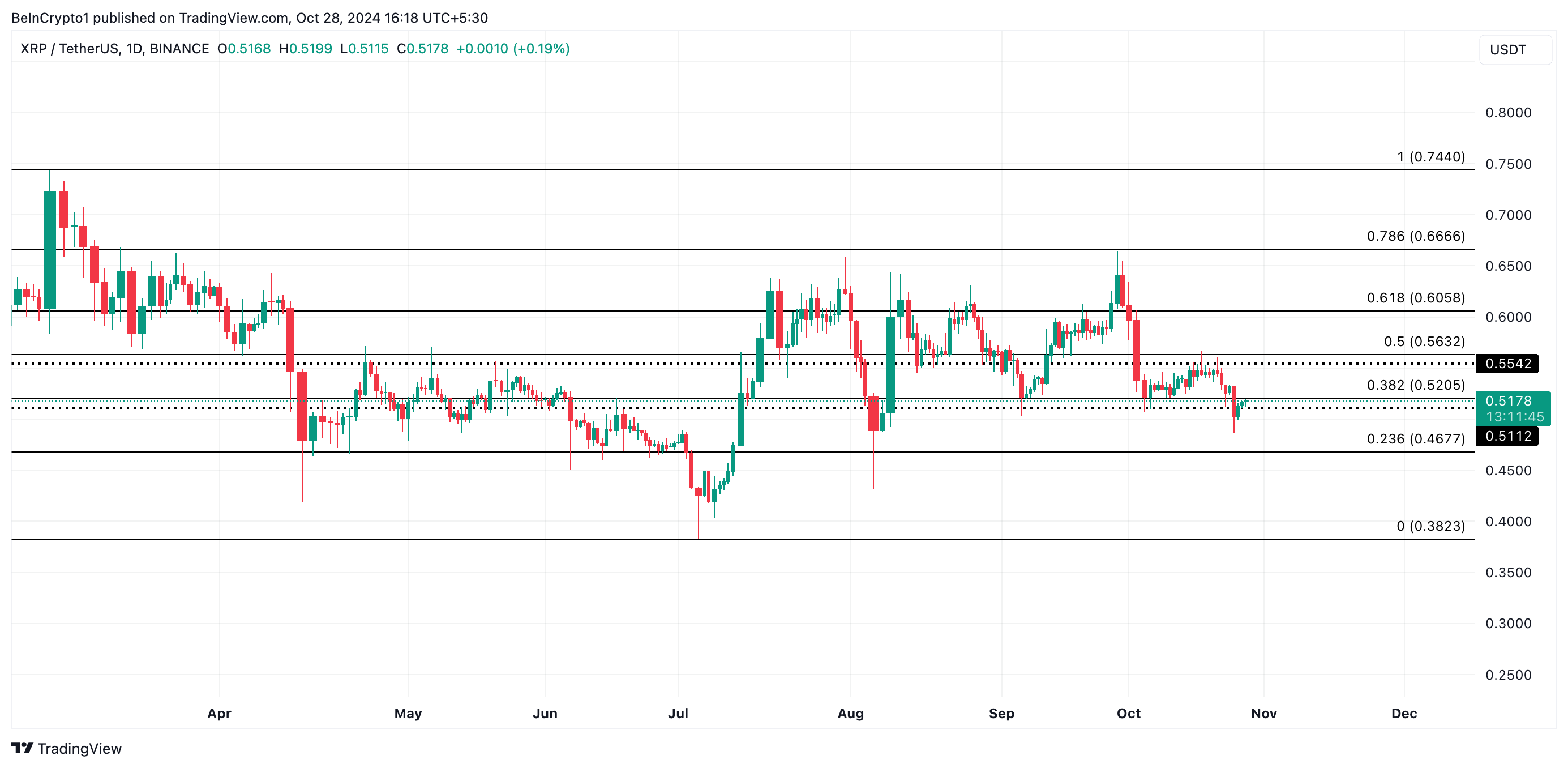 Ekim ayının başından beri XRP, belirli bir fiyat aralığında seyrediyor. $0,55 direnç seviyesi ile karşılaşırken, $0,51 fiyat seviyesinde destek buldu.
