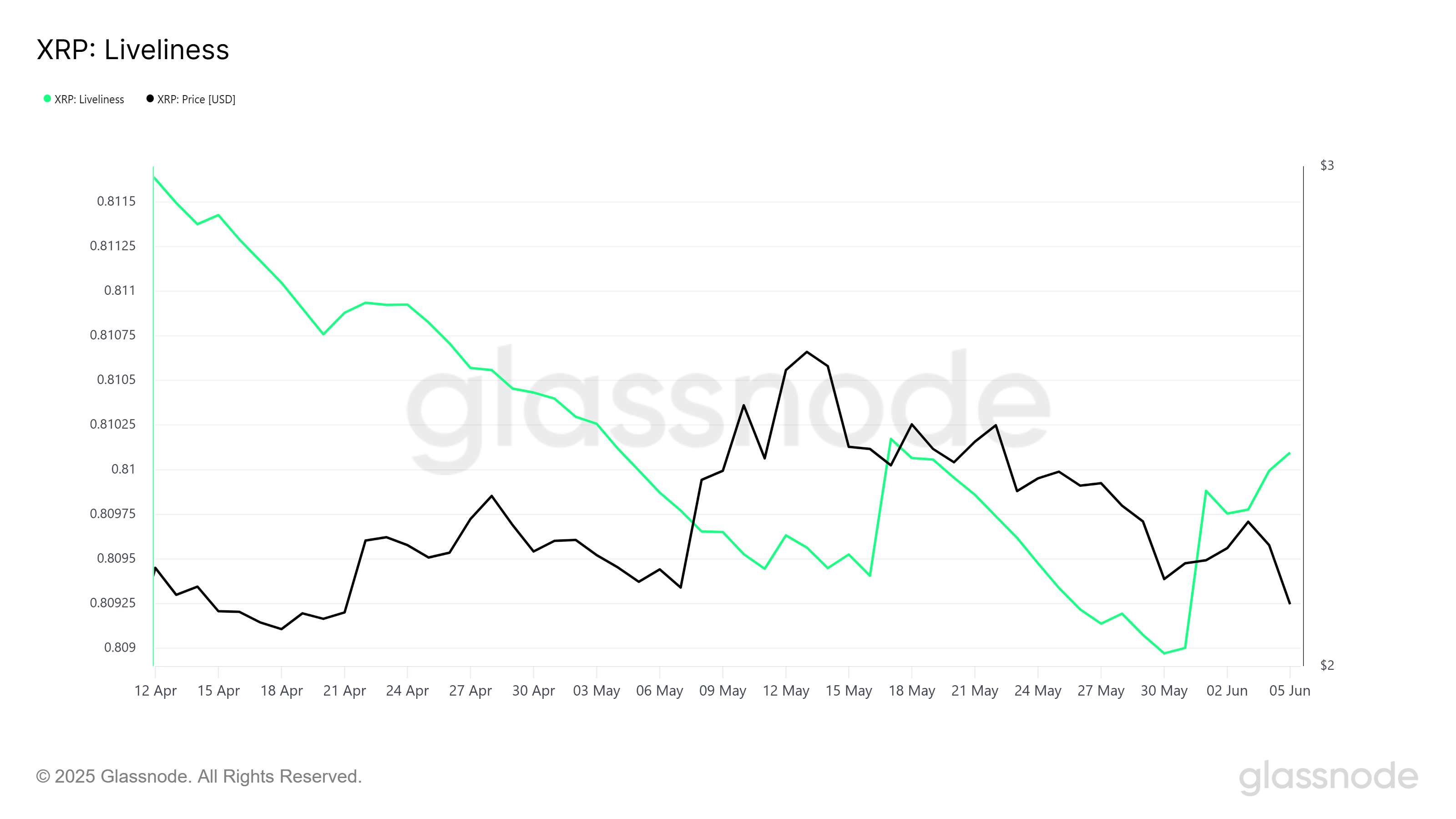 XRP’nin genel momentumu karışık durumda. Uzun vadeli sahiplerin (LTH) işlem sıklığını izleyen Liveliness göstergesi hafif bir artış gösteriyor. Bu, LTH’lerin, muhtemelen son fiyat düşüşü nedeniyle satışa başladığını gösteriyor. Düşüş sırasında LTH’lerin satış yapması genellikle azalan güvenin bir işareti olup, fiyat düşüşünü daha da kötüleştirebilir.